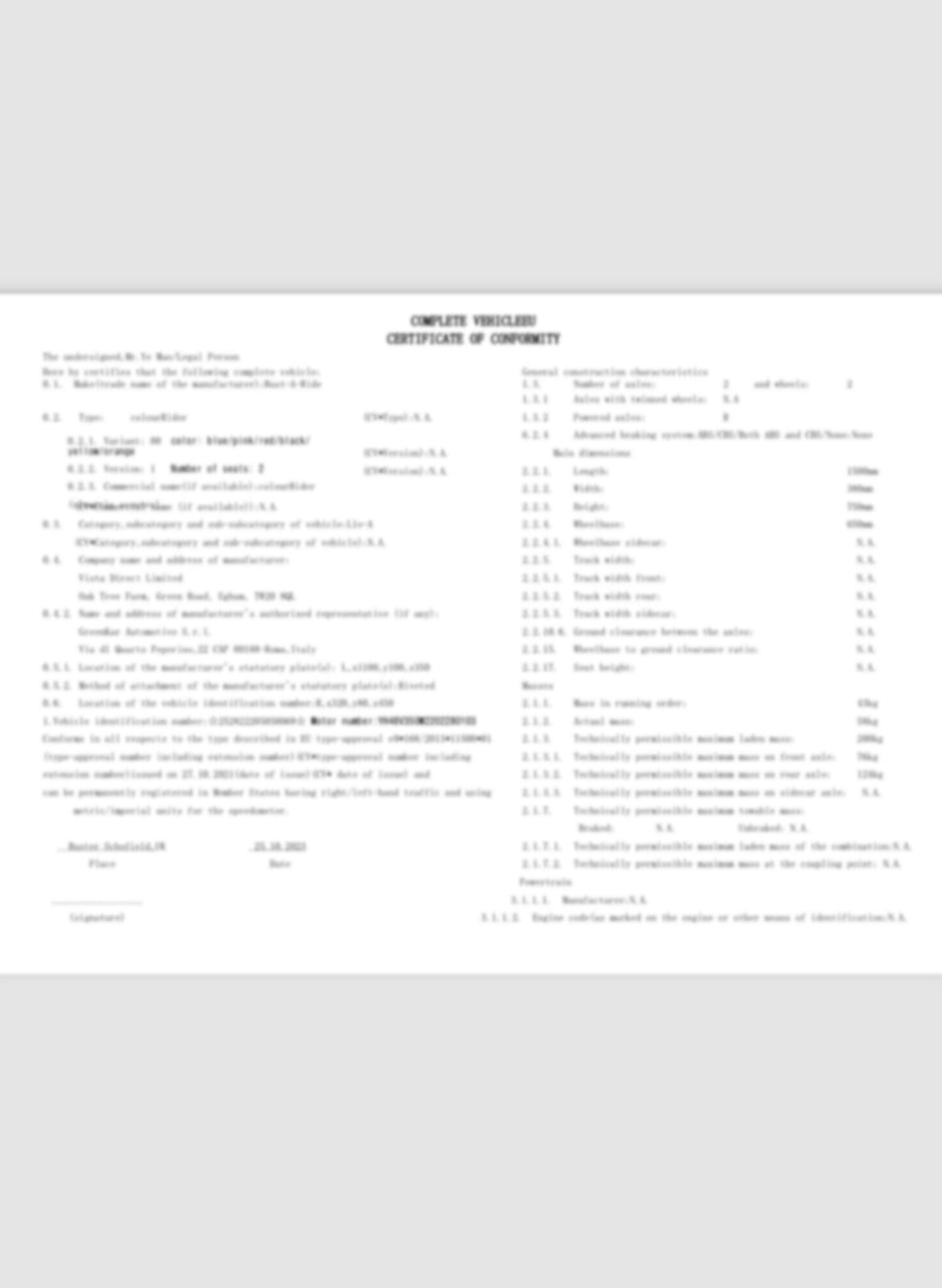 Each bike is accompanied by its own Certificate of Conformity, which is required for type-approved Twist and Go Electrically Assisted Pedal Cycles (EAPCs) to certify their road legality.